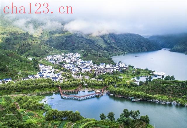 在云雾缭绕的山巅,沐浴着第一缕晨光,一片片茶园层层叠叠,犹如翠绿的波