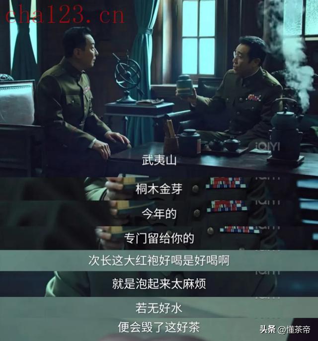 剧中吴石将军与段退之品茶时,盛赞其此前送的一款茶叶很好、想用冻顶乌龙交换,在得知是武夷水仙后,吴将军便引用“醇不过水仙”的茶谚道出其鲜明特质。