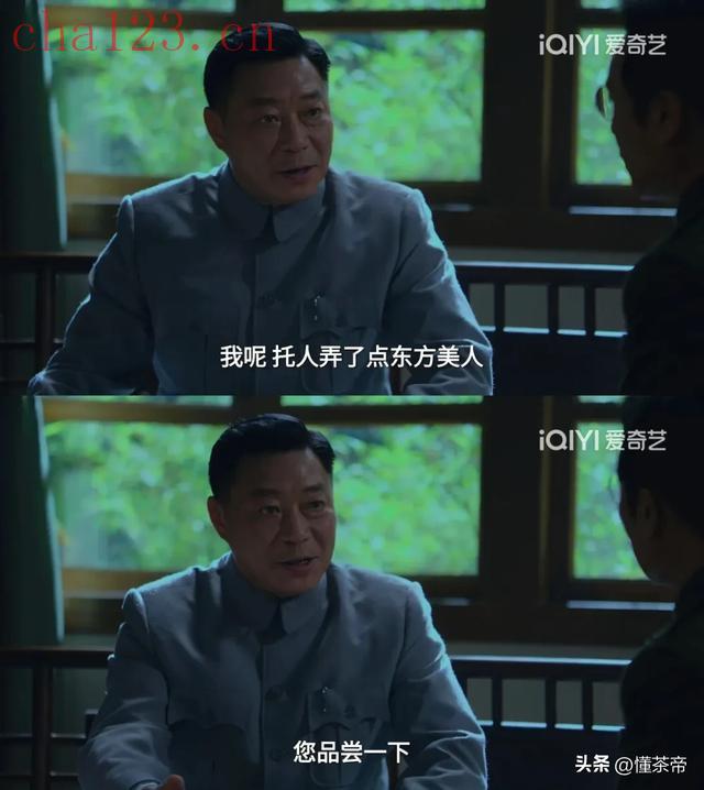 剧中,为了安抚因保密局调查而感到不悦的吴石将军,蒋经国(父蒋介石)精心安排了一场“茶局”,并托人弄了珍贵的东方美人邀其品尝。