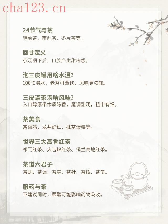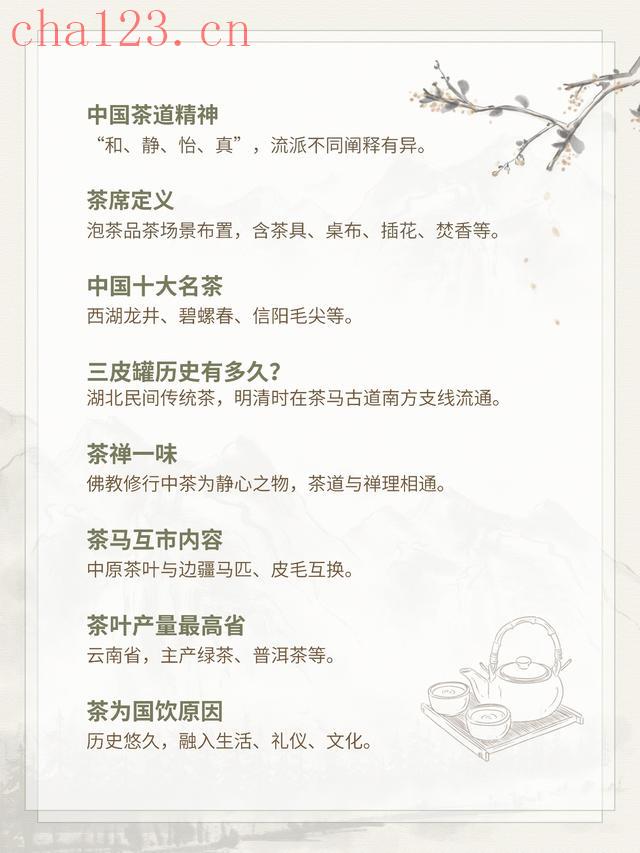 导语茶友们快看过来!还在纠结茶叶知识太零散?还在好奇三皮罐的荆楚茶韵咋这么绝?今天这篇茶叶常识 100 问 三皮罐独家干货直接把喝茶门槛打下来!从茶叶起源、制作工艺到三皮罐的历史泡法,一站式给你讲明白,收藏它,喝茶小白也能秒变懂茶达人!