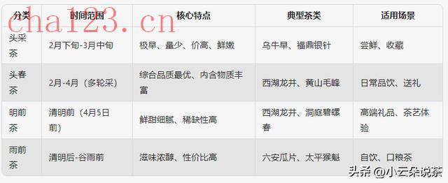 具体采摘时间,小云朵整理了一张表,茶友们可以自己点击大图保存查收啦!