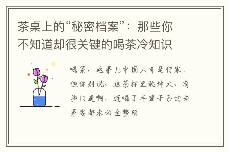 喝茶,这事儿中国人可是行家。但你别说,这茶杯里乾坤大,有些门道啊,连喝了半辈子茶的老茶客都未必全整明白。今天就来扒一扒那些一般人不知道,但对健康和品味都特别重要的茶叶“冷知识”,让你从“喝茶”变成“懂茶”。