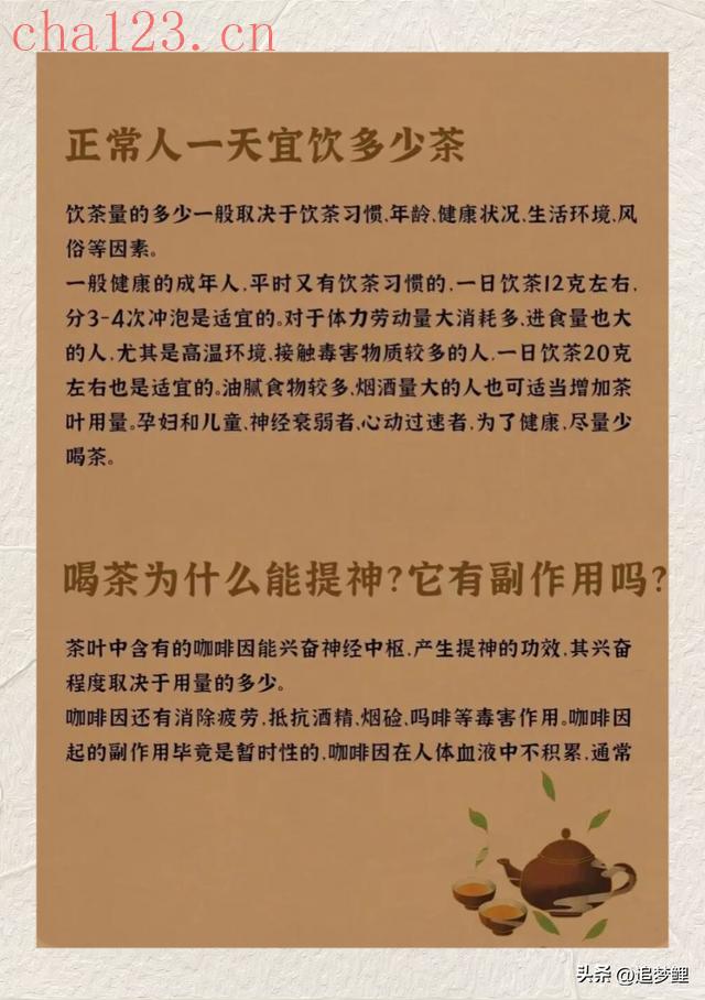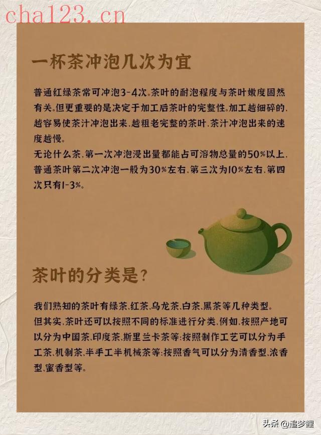 喝茶是中国人刻在骨子里的习惯,但很多人喝了一辈子茶,却未必懂茶。比如一杯茶泡3-4次才是黄金次数,正常人一天喝12克茶最适宜…这些看似简单的常识,藏着喝茶的门道。今天一次性讲透,让你喝得更科学。喝茶不仅是解渴,更是一种生活态度。懂点喝茶的常识,不是为了成为专家,而是为了让每一杯茶都喝得更安心、更有味道。愿你在往后的日子里,以茶会友,以茶养心,在茶香里遇见更好的自己。 郑重声明:本文版权归原作者所有,转载文章仅为传播更多信息之目的,如作者信息标记有误,请第一时间联系我们修改或删除,多谢。