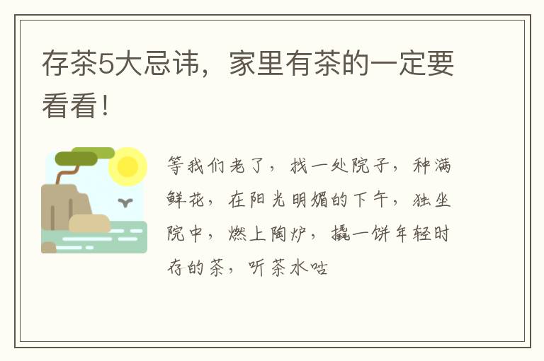 这就是存茶的意义,这也是爱茶人对生活的一种向往。茶圈一直流行,存新茶喝老茶。尤其是白茶,越存越香。说到存茶,不得不提的就是,茶,也有怕的。