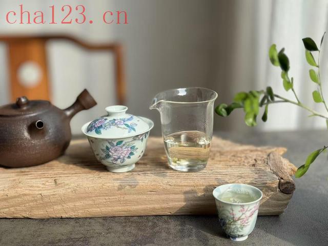 烫壶温杯后,将干茶投入尚有余温的盖碗中,借助热气激发干茶香气。