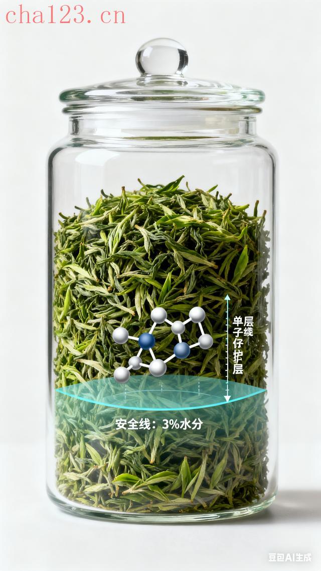 “茶叶怕潮” 是常识,但很少有人知道,茶叶水分含量的 “安全线” 是3% 左右。这个湿度下,茶叶成分会和水分子形成 “单层保护罩”,能把易氧化的脂质和空气中的氧分子隔开,就像给茶叶穿了 “防护衣”,既保干燥,又锁风味。