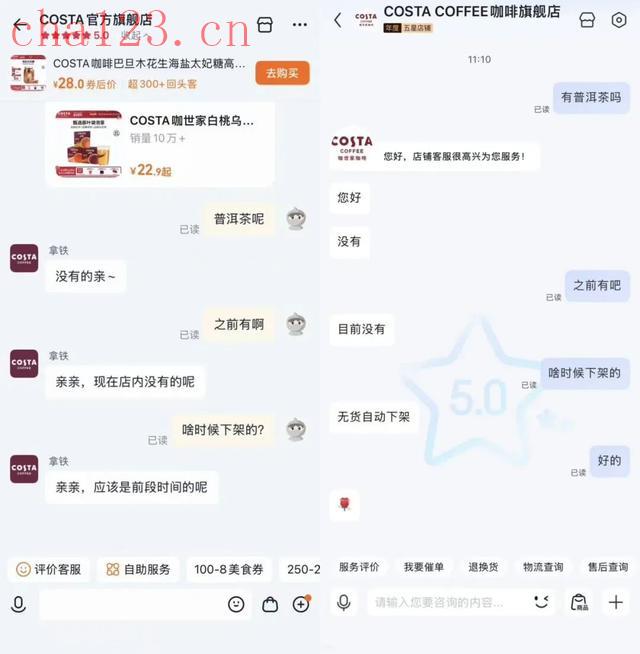 据界面新闻消息,1月9日,记者查询天猫平台“COSTA官方旗舰店”和京东平台“COSTA COFFEE咖啡旗舰店”,均未发现相关普洱茶产品。平台客服也称目前店铺内没有普洱茶,进一步追问下,天猫平台客服称:“(普洱茶)应该是前段时间下架的。”而京东平台客服则表示:“无货自动下架。”