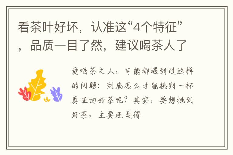 其实,要想挑到好茶,主要还是得看这四个关键点: