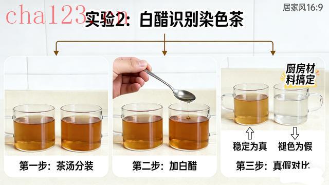 ✅ 实验2:白醋测色素添加(辨别染色茶)原理:人工色素遇酸性物质易分解褪色,天然普洱的色素(茶褐素、茶红素)性质稳定,遇酸不怎么变色。操作:泡一杯茶汤,分两半装在两个杯子里,其中一杯加半勺白醋。若加醋的杯子茶汤快速变浅、甚至透明,大概率是染了人工色素的假茶;真普洱茶汤只会轻微变浅,整体色泽依然均匀自然。