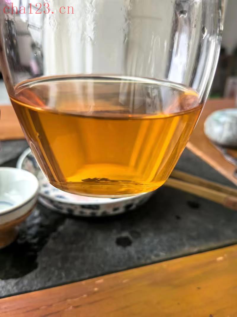 · 颜色与亮度:中火茶汤橙黄明亮,足火茶汤橙红明亮。无论深浅,“亮”是必须的!汤色发暗?品质打折。