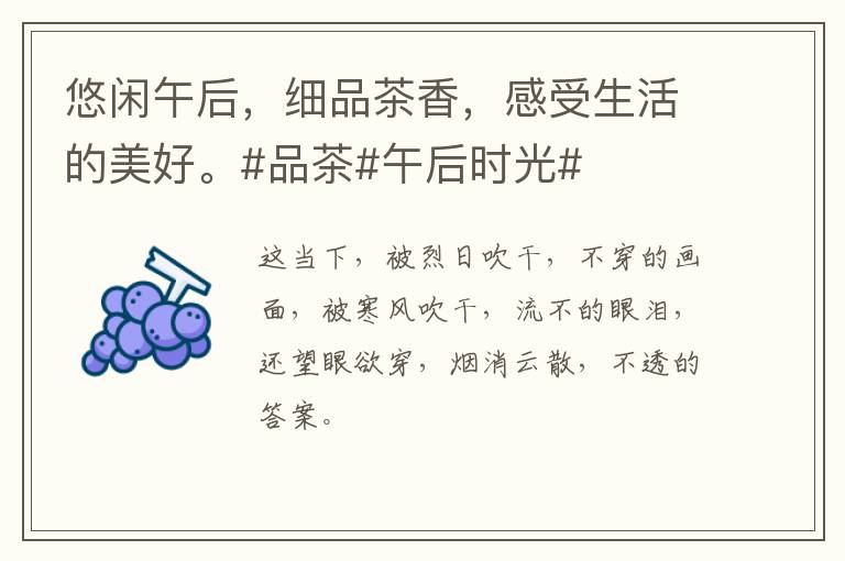 这当下,被烈日吹干,不穿的画面,被寒风吹干,流不的眼泪,还望眼欲穿,烟消云散,不透的答案。 郑重声明:本文版权归原作者所有,转载文章仅为传播更多信息之目的,如作者信息标记有误,请第一时间联系我们修改或删除,多谢。