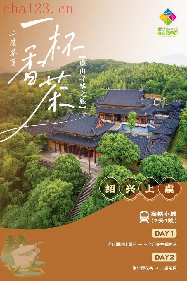 路线:第一天:游玩覆卮山景区-三个月亮主题村落;第二天:张村樱花谷-上虞茶场