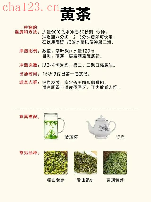 4、 黄茶:跟绿茶有点像,水温高一点点!