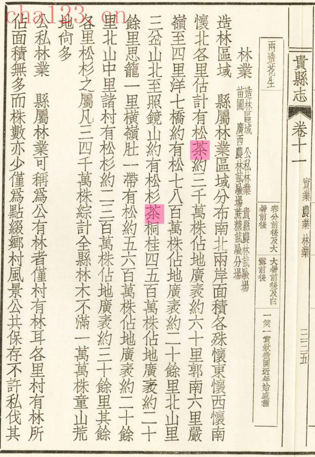 贵县素有终止松杉茶桐的传统。貴縣志 卷十一 實業 農業 林業 三三五