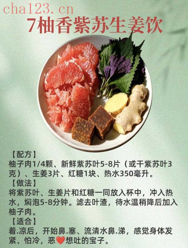 功效:紫苏防感冒,生姜驱寒,适合受凉或淋雨后饮用。