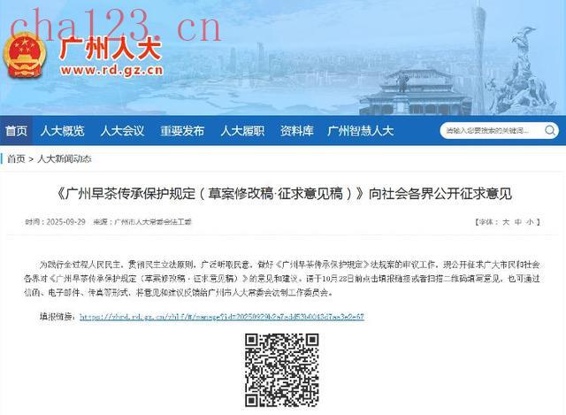 近日,广州市人大常委会官网发布了《广州早茶传承保护规定(草案修改稿·征求意见稿)》(以下简称《征求意见稿》),公开征求意见和建议,引发关注。
