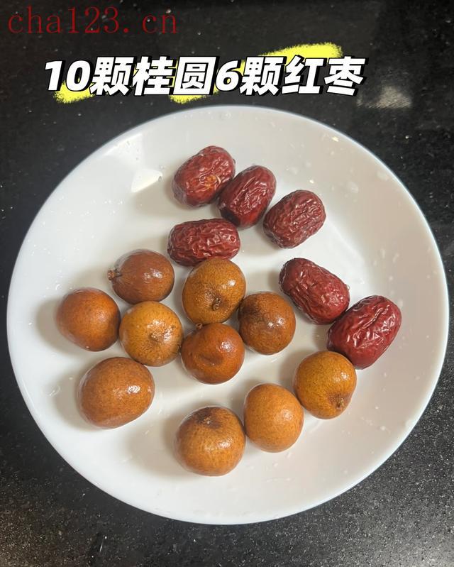 第一步备料:20颗桂圆(干的鲜的都能行,我家当时用的是晒干的桂圆干,更甜)、4颗红枣,记得把红枣去核切成片,煮的时候更容易出味;重点是桂圆核千万别扔!老公特意叮嘱我:“这核比果肉还能安神,保留着一起煮,效果能翻倍。”