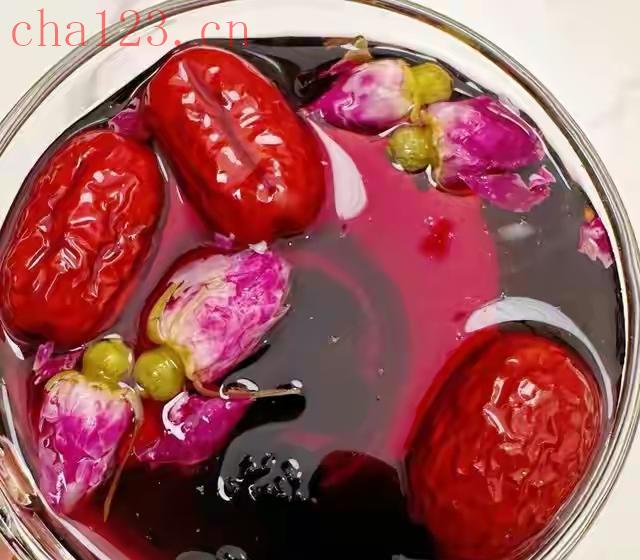 玫瑰3朵 红枣2颗(剪开去核),老方子大家都熟,真正让它起飞的是加3-5粒黑枸杞。
