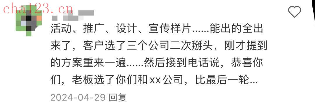 恭喜你们,老板选了你们和xx公司,比最后一轮。