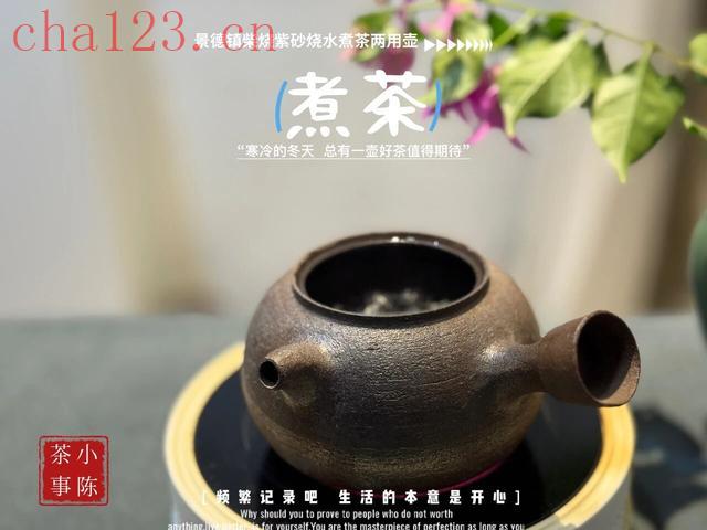 今天拿出来煮茶的,仍旧是去年在景德镇订制的柴烧紫砂烧水两用煮茶壶。