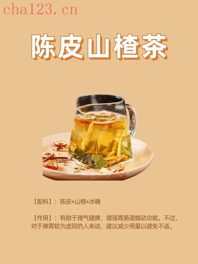 1. 陈皮山楂茶——解腻消食款材料:陈皮5g、山楂5片、冰糖1小块(可选)