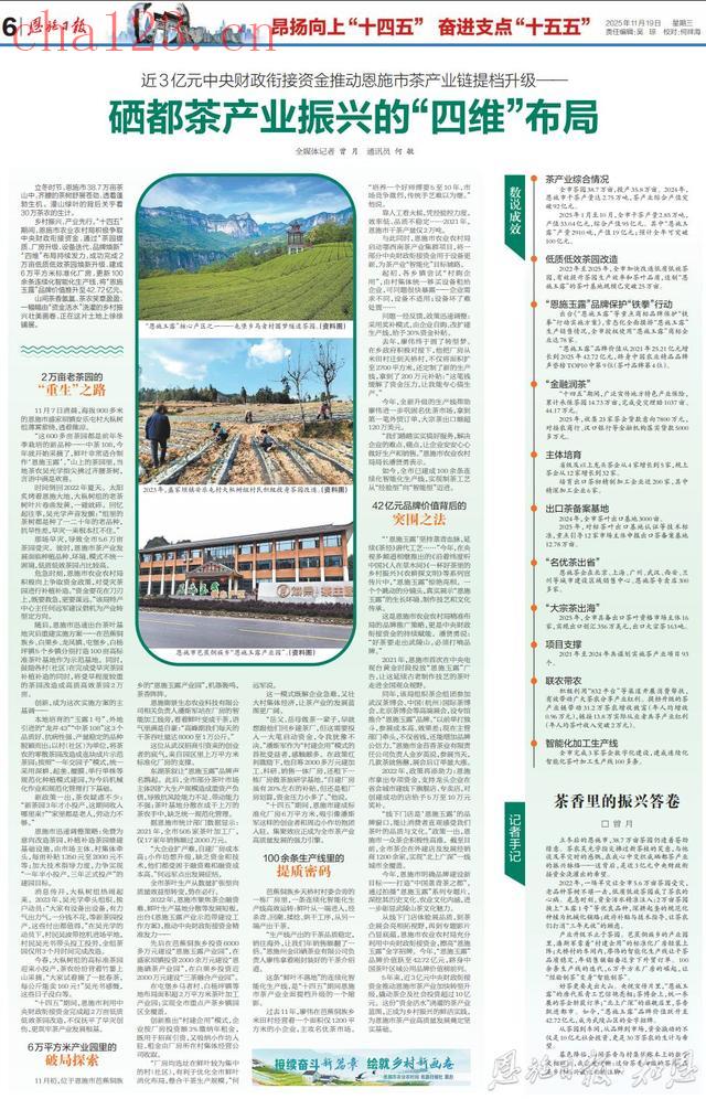 与此同时,恩施市农业农村局启动鄂西南茶产业集群项目,将一部分中央财政衔接资金用于设备更新,为茶产业“智能化”目标铺路。