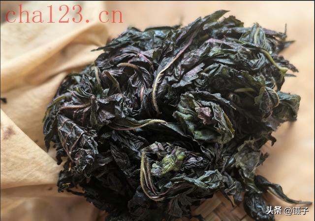 3. 发酵变色:用湿润的面包将揉捻好的紫苏叶包裹起来,进行发酵。大约半小时后,紫苏叶会变黑,杆子会变红。