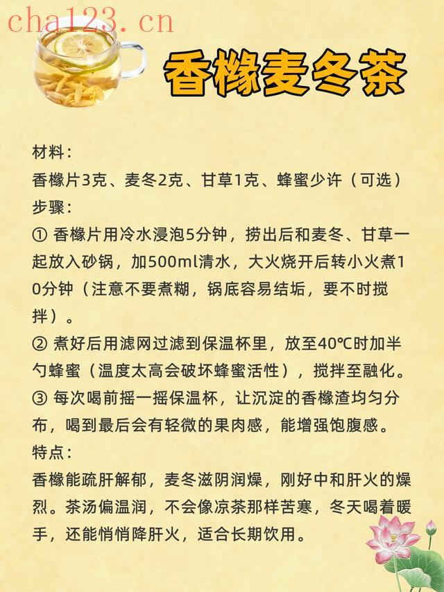 香橼能疏肝解郁,麦冬滋阴润燥,刚好中和肝火的燥烈。茶汤偏温润,不会像凉茶那样苦寒,冬天喝着暖手,还能悄悄降肝火,适合长期饮用。