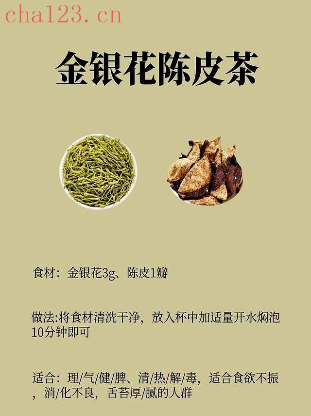 做法:陈皮温水泡软,刮掉白瓤;和金银花一起焖10分钟
