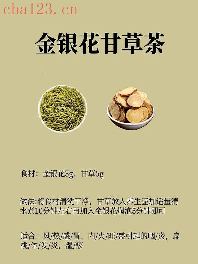 做法:甘草加水800ml煮10分钟,关火后放金银花,再焖5分钟