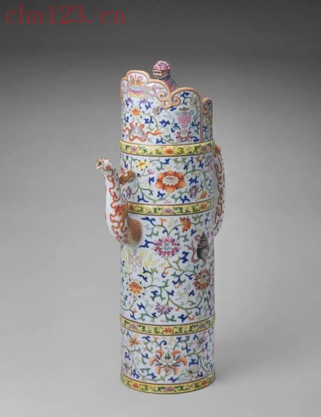 清 粉彩八吉祥缠枝莲纹多穆壶