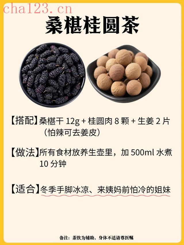 第五款:桑椹桂圆茶(冬天手脚凉就喝它)