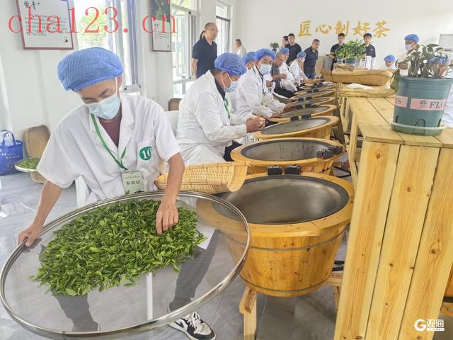 茶,承载着中华文明的千年智慧,也寄托着乡村振兴的时代希望。举办这次大赛,旨在统筹做好“三茶”融合(茶文化、茶产业、茶科技)这篇大文章,推动青岛茶产业高质量发展,大赛以“茶香茶韵·匠心传承”为主题,聚焦绿茶传统手工炒制技艺,设置烘炒青工艺项目,重点考核选手的现场操作规范与成品茶质量。比赛现场,茶香四溢,锅温如火。选手们手法娴熟、动作连贯,一抖一搭、一捺一甩之间,尽显匠心传承。记者了解到,选手需在90分钟内完成指定鲜叶原料的现场炒制,由专家评审团从操作手法、火候掌控、茶叶外形、香气、汤色、滋味及叶底等多维度进行综合评定。大赛总成绩按现场操作(占10%)与成品茶质量(占90%)加权计算,确保评审过程科学严谨、结果公正权威。