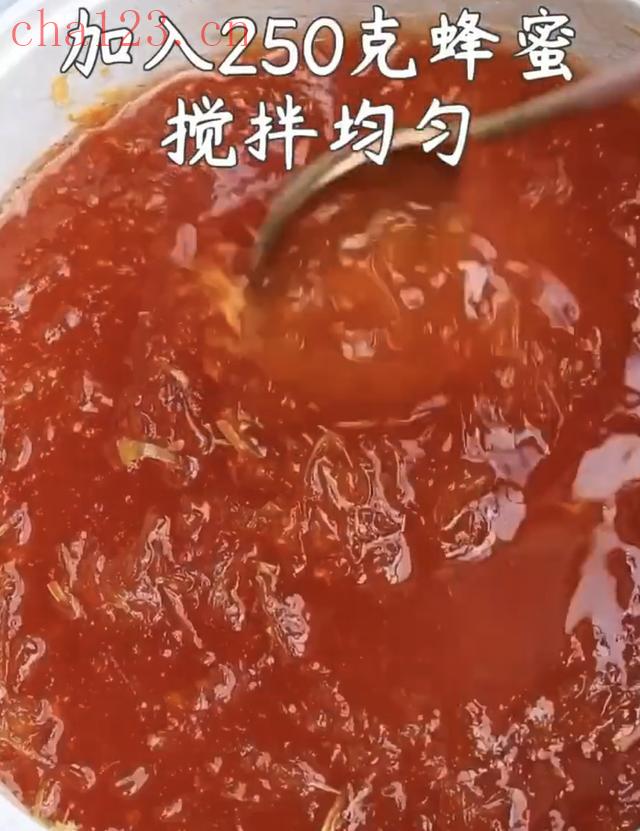 ✅ 等温度降到温热,加250g蜂蜜拌匀(千万别趁热加!会破坏蜂蜜营养),晾凉后装进密封罐,放冰箱冷藏就行~