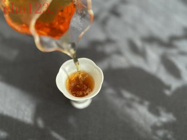 柚子皮色的茶汤,不像武夷岩茶,倒像是铁观音的样子。