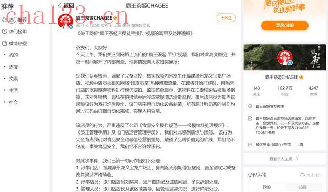 霸王茶姬方面表示,高度重视此事,并第一时间展开了内部调查。企业调取了完整的监控视频,经核查,涉事门店为福建漳州龙文宝龙广场店,视频中店员为跟风网络“印度奶茶”热梗博取流量,在即将开始打烊时,用当天门店的报损废弃物料进行模仿摆拍。