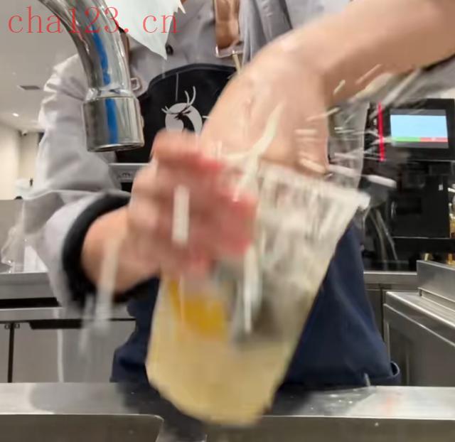 昨日,有网友晒出有女子身着霸王茶姬工服,徒手制作奶茶的视频。该女子并未佩戴手套,徒手捏挤柠檬片或橙片后,直接用手在奶茶杯内搅拌饮品。该视频还配文:“还好我没有洗手”。
