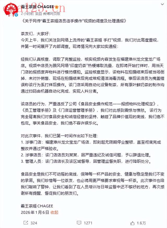 标准落地遇尴尬 玩梗风波闹大了说句实在话,这次事儿来得又突然又讽刺。1月6号那天,网上突然刷爆一条视频,是某茶姬的店员穿着工服,模仿所谓的“印度街头徒手制饮”。