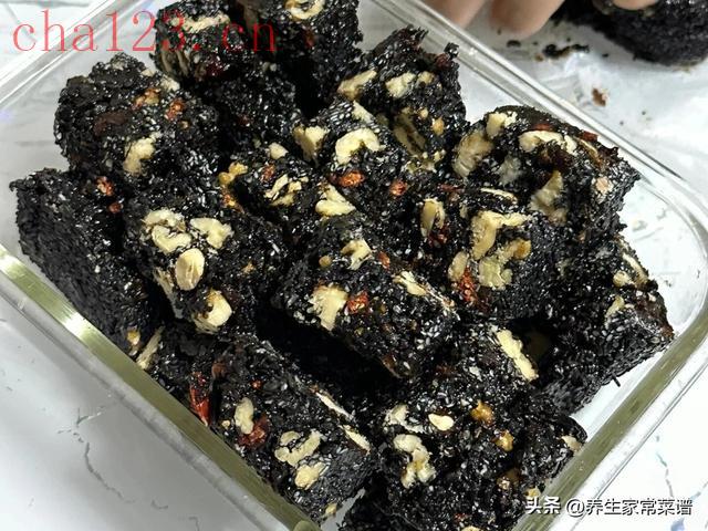 食材处理小技巧:黑芝麻和核桃提前用小火炒香,磨成细粉更易入口,熬制糕体时用小火慢熬,定型后切小块,吃着更方便。