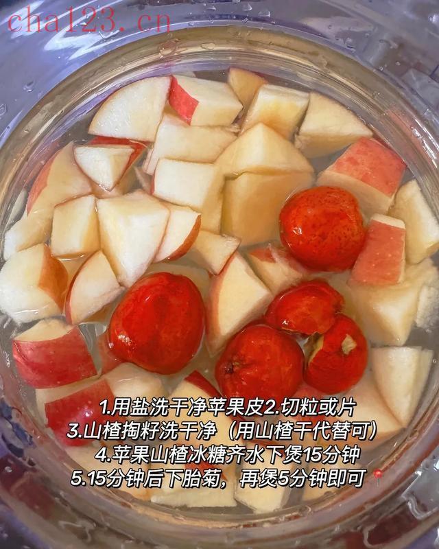 这下我可信心大增,干脆把“水果”也派上了用场,捣鼓出第三款:菊花山楂苹果水。半个苹果切块,和山楂干、几粒冰糖一起下锅,用花茶模式煮上十五分钟,最后撒一把杭白菊再焖五分钟。满屋子都是果香混合花香的酸甜气息,喝起来更是爽口。苹果的温和很好地中和了山楂的酸,菊花的清香又提升了整个口感,这哪像在喝“药茶”,分明是享受嘛!