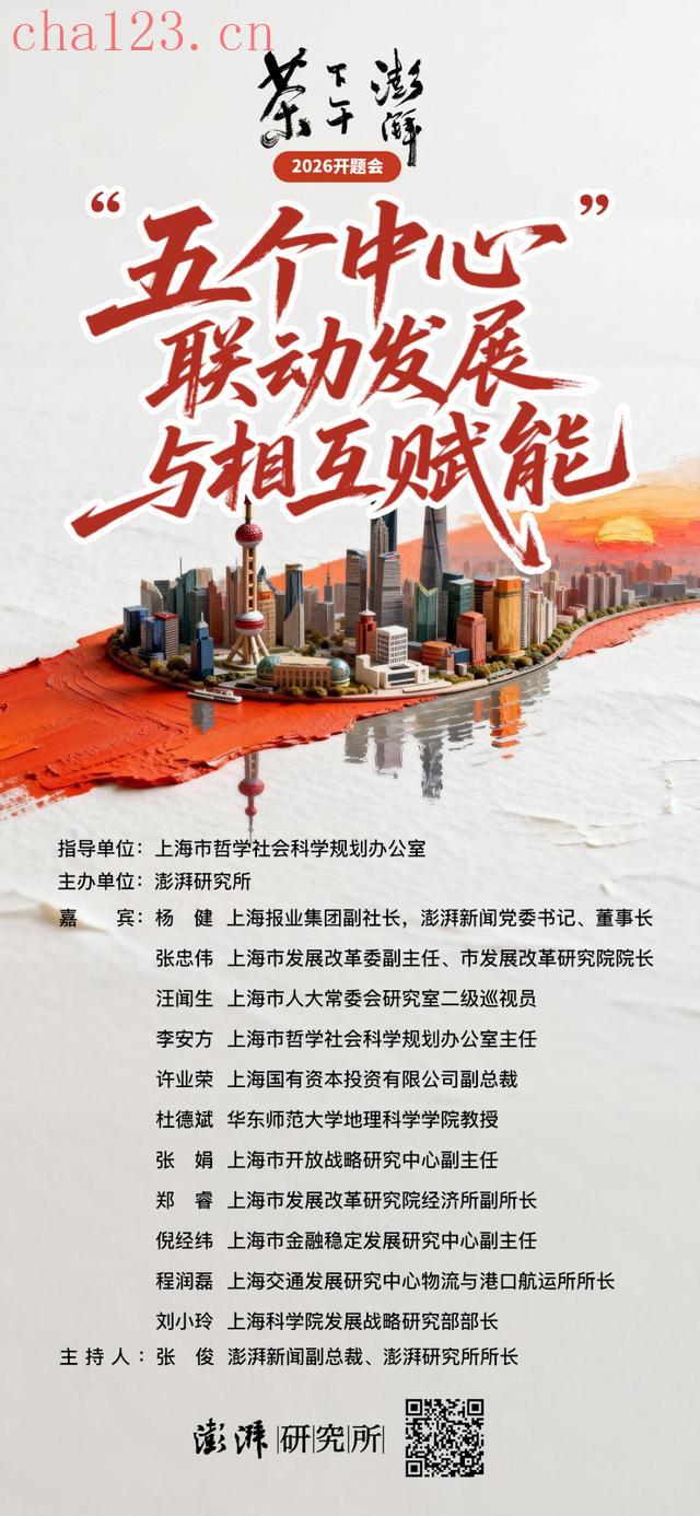 2026年1月27日下午,“澎湃下午茶/走进上海智库”暨2026年开题会在上海报业大厦举行。本次研讨会以“‘五个中心’联动发展与相互赋能”为主题,邀请政商学各界代表共同探讨上海“十五五”如何进一步推动“五个中心”协同发展与效能提升。与会嘉宾从政策设计、法治保障、资本赋能、科创策源、规则对接、产业实践等多维视角,深入剖析了“五个中心”内在的逻辑关联、当前面临的挑战以及未来联动发展的路径。