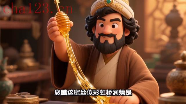 最逗的是校经老吏,那日喉燥声哑,诵经时把南无阿弥陀佛念成了南咳阿弥。小沙弥们捂嘴笑老吏爷,您这是要给佛祖递咳痰帖。正乱时西域来的养蜂人蜜公赶着驼队进了经坊,他卸下三只陶瓮,瓮口蜡封一揭,满院顿生异香。蜜公舀出琥珀色的蜜浆,笑吟吟道各位笔墨菩萨,试试咱这润燥解毒百花膏。