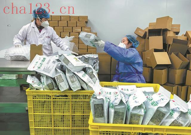 1月25日,春节前工人们在莓茶生产车间包装莓茶。赵伊梦 摄