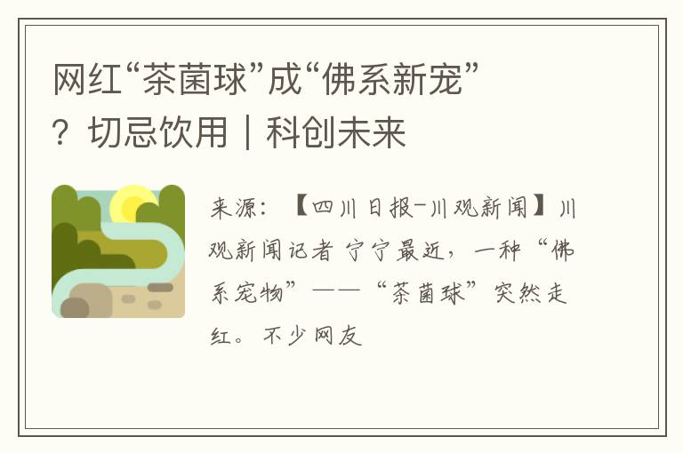 “茶菌球”到底是什么,是怎么“长”出来的?专家提醒,这存在不小的安全隐患,切忌饮用。