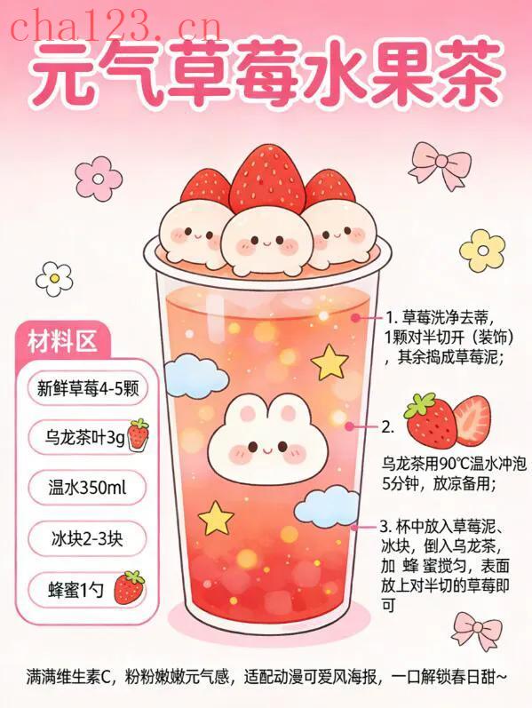 草莓水果茶酸甜天花板,春日少女必喝。