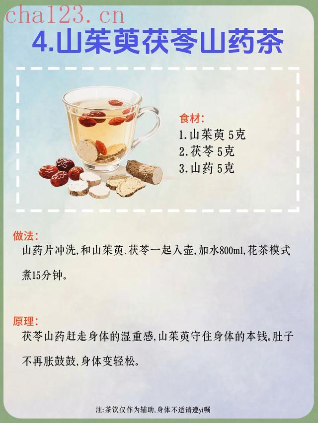 4. 山茱萸茯苓山药茶食材:山茱萸5克、茯苓5克、山药5克