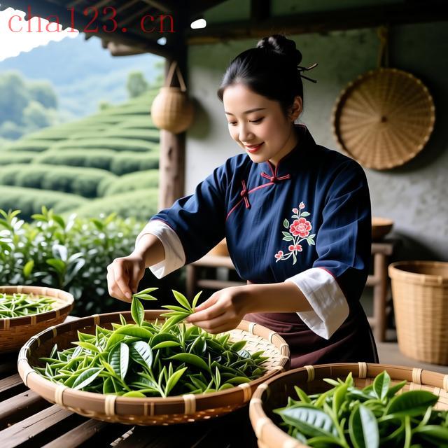 采茶的人们便日日去看。他们比谁都懂得等待的分寸——太早,芽还太嫩,内里的滋味尚未攒足;太晚,叶子舒展开来,那份紧致的鲜灵劲儿便散了。清明前的十来天,是一年里最金贵的光景。天还未大亮,露水还挂在草尖上,她们已经背着竹篓上山了。手指在茶丛间翻飞,只采摘最顶端的一芽一叶,指甲都不敢用力,怕误伤了嫩芽。采下的茶青摊铺在箥箕里,薄薄一层,绿得发亮,像刚从梦里醒来的样子。