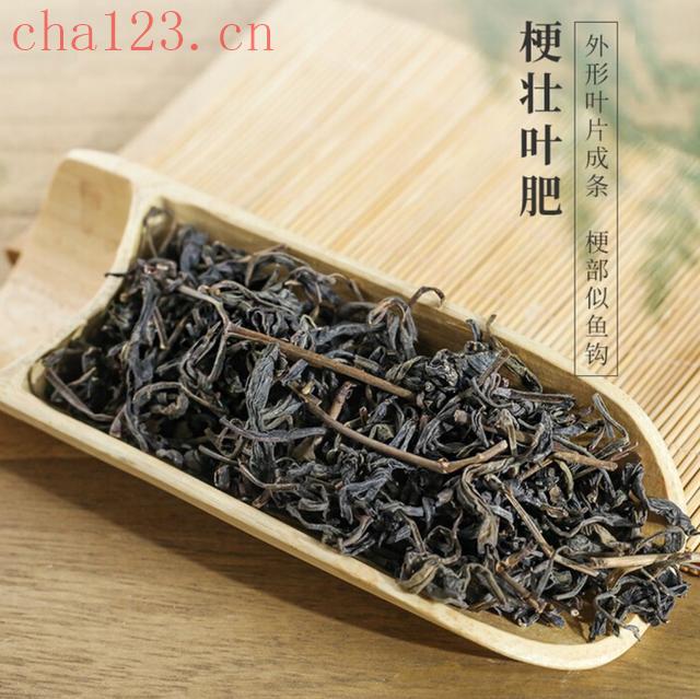 叶片成条,枝叶相连,形似钓鱼钩,梗叶古铜色,汤色深黄,味浓厚具焦糖香,叶底黄色。