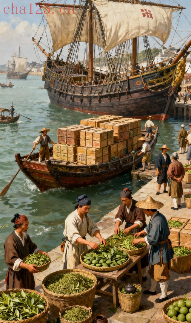 茶叶的向外传播循着海陆两路展开。陆上丝绸之路与茶马古道上,商队驼铃将茶叶带往中亚、西藏乃至欧洲腹地;海上贸易兴起后,17世纪初荷兰商人率先将中国茶叶运往欧洲,使其成为贵族专属的“黄金饮品”。1662年,葡萄牙公主凯瑟琳将茶叶作为陪嫁带入英国宫廷,点燃英伦饮茶热潮。