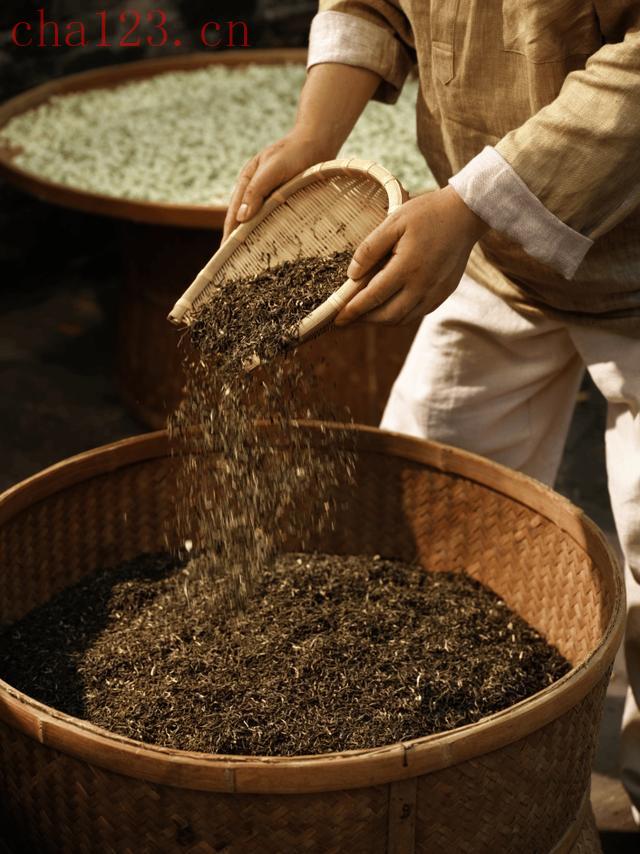 花茶是我国特有的再加工茶,核心工艺是“窨制”,利用茶叶吸附异味的特性,用精加工后的“茶坯”和鲜花一起窨制,还会经过“提花”工艺,最后剔除失去花香的花干,这才是真正的“窨花茶”(俗称“窖花茶”)。
